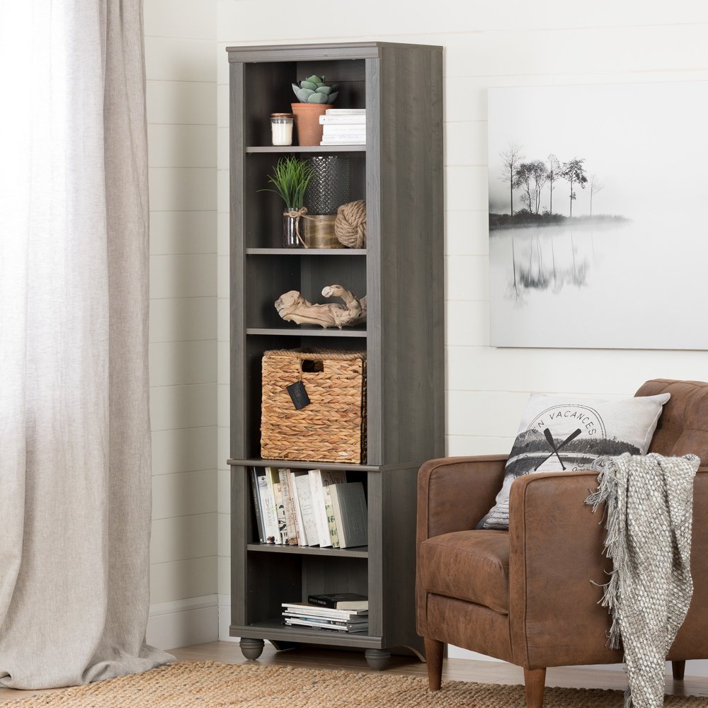 Browse south shore bookcases & bookshelves at staples and shop by desired features or customer ratings. South shore kanji 5 shelf narrow bookcase with 2 small woven felt baskets brown weathered oak laminated particleboard modern farmhouse. It's ideal for storing and displaying your plants, smartphone south shore bookcase available in morgan cherry, black, pine, soft gray and white. It has 6 adjustable shelves with a closed back panel. Look for a coordinated selection of office furniture as well.
